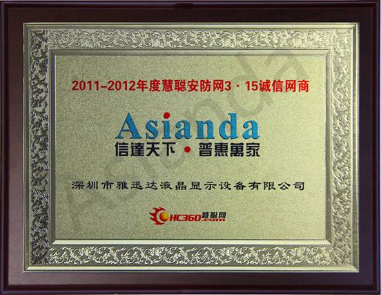 深圳市雅迅達液晶顯示設(shè)備有限公司,致力于安防監(jiān)控產(chǎn)品的研發(fā)、生產(chǎn)和銷售為一體的實力型企業(yè)。經(jīng)過不斷的改進、創(chuàng)新、積累,研發(fā)成果已經(jīng)覆蓋了視頻采集、監(jiān)控、傳輸、顯示等多個領(lǐng)域,并形成了具有Asianda(雅迅達)自主知識產(chǎn)權(quán)的多類產(chǎn)品。Asianda(雅迅達)液晶拼接系統(tǒng)已廣泛應(yīng)用于金融、司法、政府、軍隊、交通、企業(yè)、教育、醫(yī)療等行業(yè)。此次榮獲“2011-2012年度慧聰安防網(wǎng)315誠信網(wǎng)商”,不僅是對Asianda(雅迅達)在安防領(lǐng)域的肯定,更是對Asianda(雅迅達)在整個終端顯示領(lǐng)域的認可。也離不開廣大用戶、業(yè)界同仁及社會各界人士對雅迅達的大力支持。