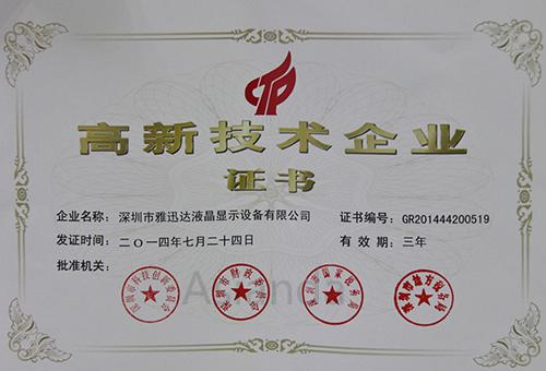雅迅達獲“高新技術企業(yè)認證”