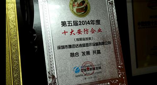 雅迅達(dá)榮獲“第五屆2014年度最受關(guān)注視頻監(jiān)控類十強(qiáng)”