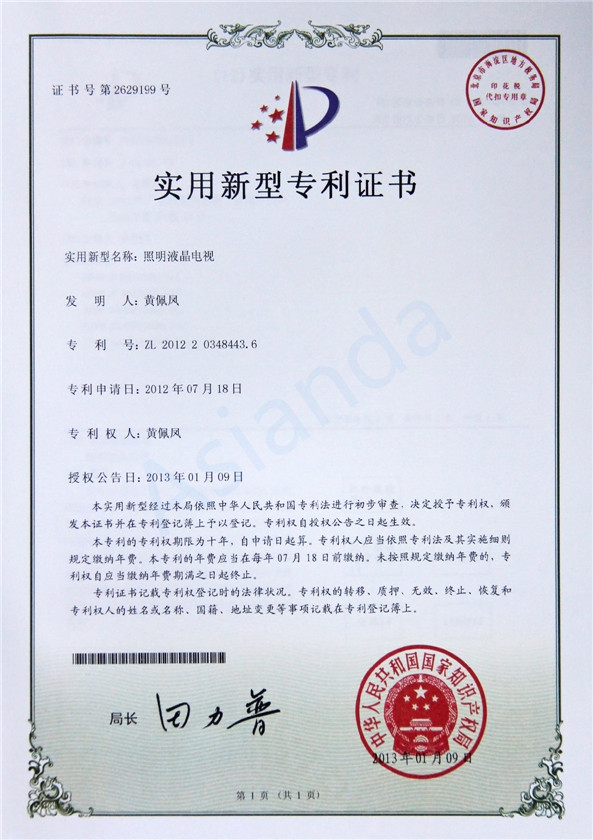 照明液晶電視專利