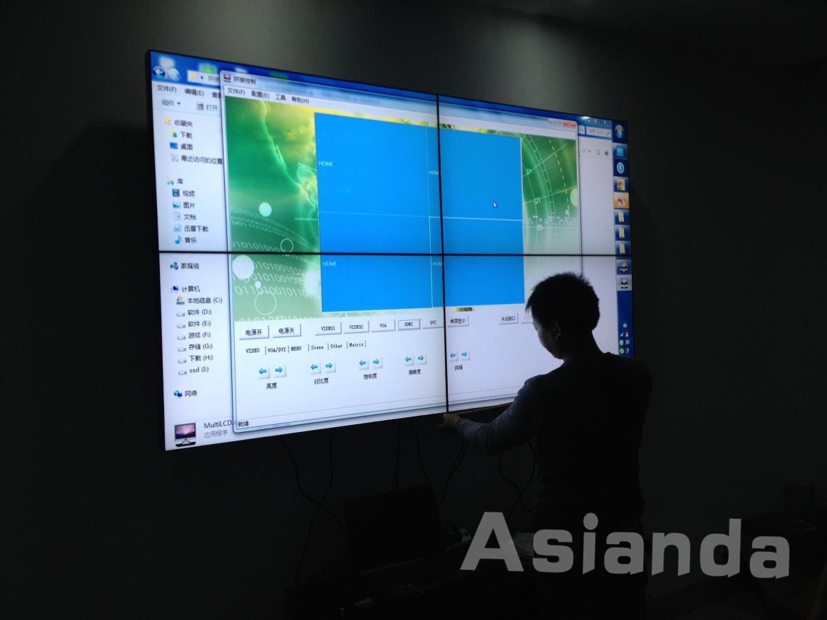 46寸超窄邊拼接,2*2液晶大屏拼接,支架式安裝。