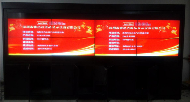 南陽市某汽車的2×4液晶拼接應(yīng)用于汽車站車輛監(jiān)控,該拼接屏的拼縫是6.7mm.