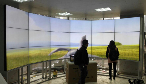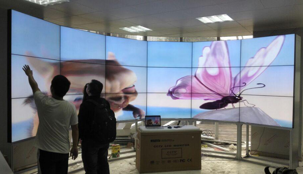 重慶該三甲醫(yī)院的液晶拼接墻采用弧形鋁合金支架組成的3x6的拼接墻,采用弧形拼接一般是考慮到墻體不平時(shí),便于安裝。其弧形拼接的拼縫為5.3mm。