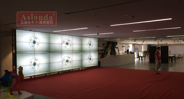 該產(chǎn)業(yè)基地展廳液晶拼接墻采用了49寸did3.5mm超窄邊液晶拼接單元,共用28片。整體拼接效果屬于長條形,需用圖像處理器保證畫面比例及分配顯示區(qū)域。49寸didi液晶拼接單元其LED背光亮度為450cd/㎡,足以滿足室內(nèi)顯示需求,拼接效果帶有小弧度防止邊緣視覺誤差和死角,還能防止部分反光影響。49寸did拼接墻是近期流行尺寸,繼46寸和55寸之后,49寸顯得更受歡迎,工藝及液晶分子的表現(xiàn)力都比較優(yōu)秀。